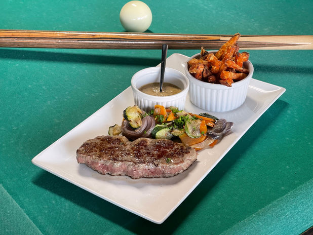 FAUX-FILET DE BŒUF, FRITES DE PATATES DOUCES